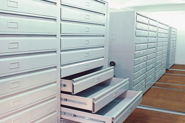 底圖密集柜是檔案館、圖書館、設計公司存放各類圖紙的專用裝具。采用設有特別導軌的滾結構抽屜,存取靈活、輕便;抽屜拉出時能始終保持水平狀態,適用于各類型底圖平放。